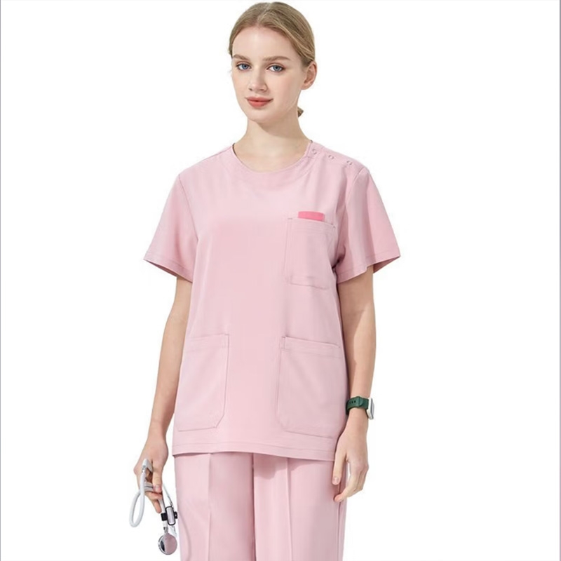 女士粉色護士制服,護理人員襯衫,帶有紐扣和口袋