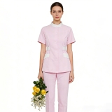 女醫護專用粉色分體工作服 V領帶口袋短袖上衣+寬鬆長褲,制服服定製