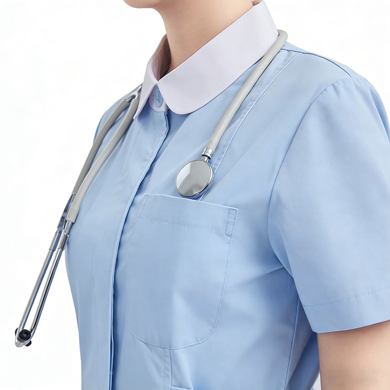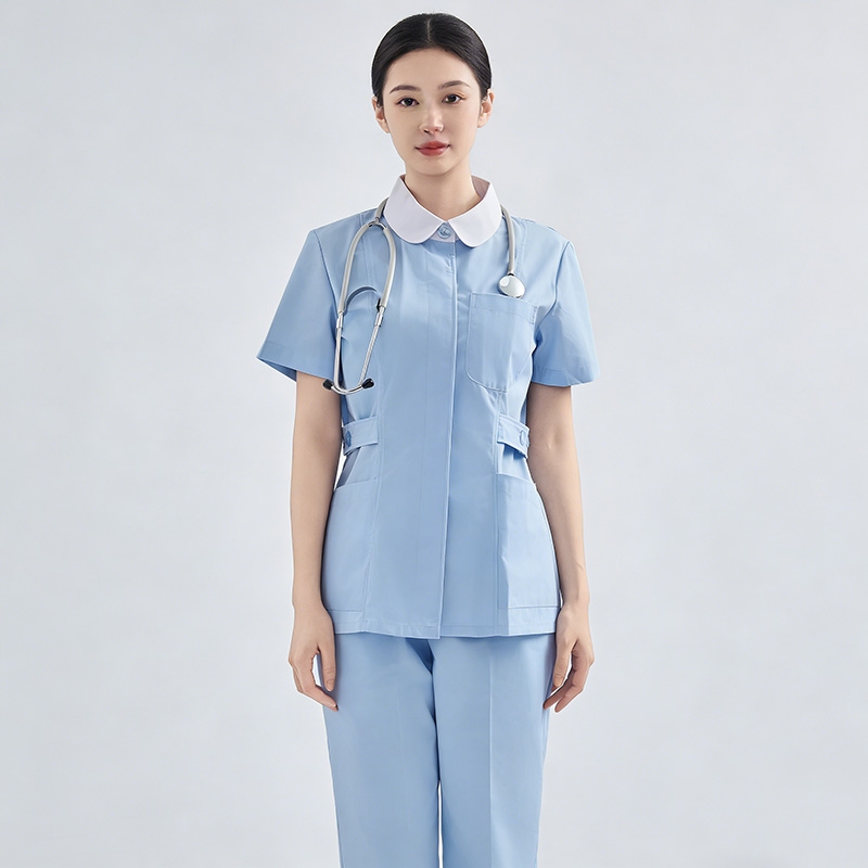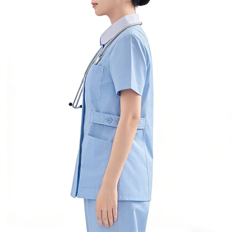 醫護制服女短袖,淺藍色護士服多口袋設計,透氣速幹醫院診所工作服