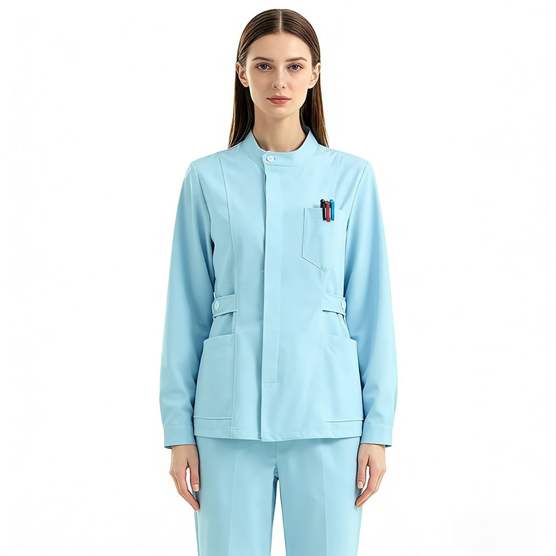 專業醫護工作服,淺藍色長袖護士服,帶口袋設計醫生制服套裝