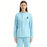 春秋長袖款淺藍色長袖工作服,女士立體剪裁多口袋護工職業套裝