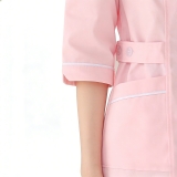 夏季粉色護士服連衣裙,圓領短袖白邊裝飾,護理院美容院醫美工作制服