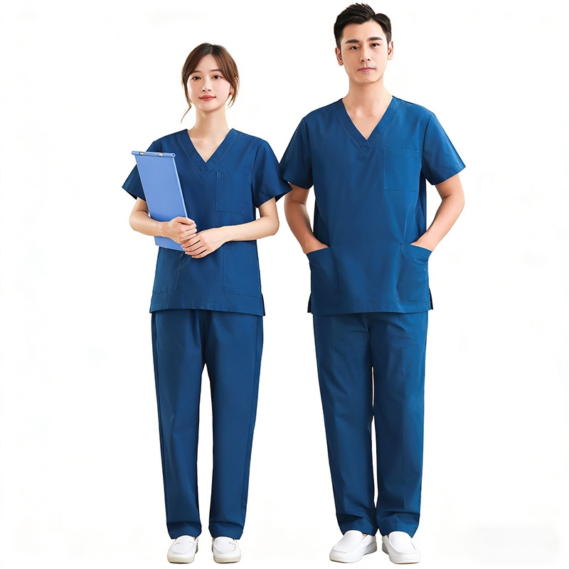 男女通用醫用制服套裝,寶藍色外科 scrub 服帶口袋,診所與醫院工作人員舒適穿搭