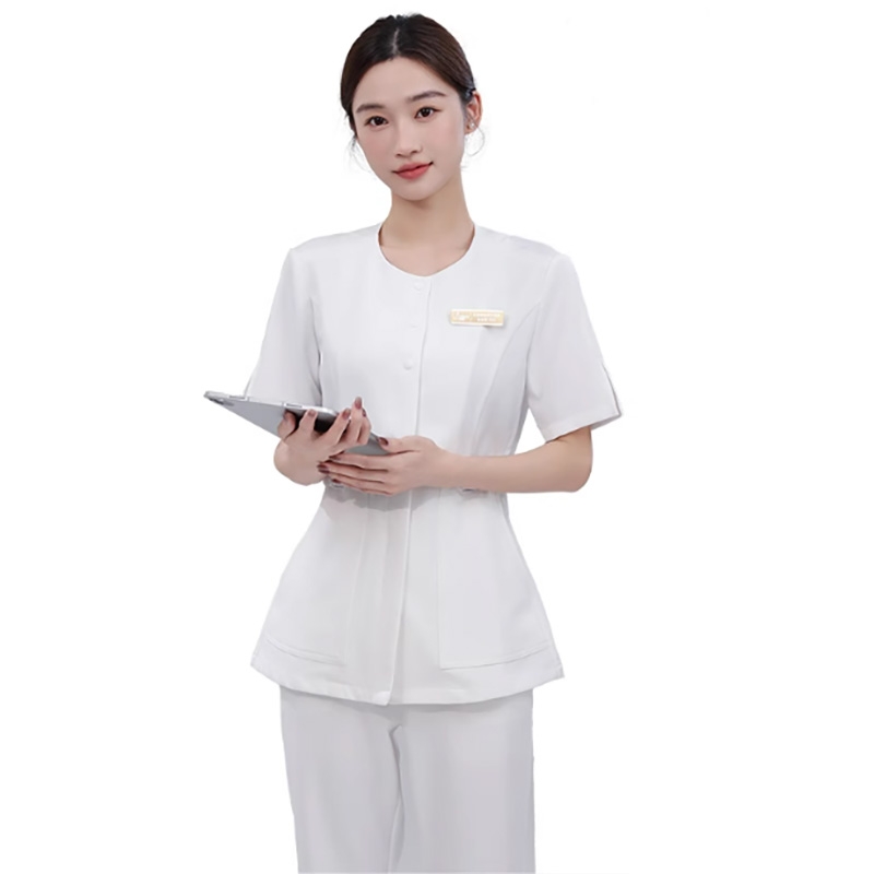 服務行業白色制服,收腰短袖醫護套裝,白色收腰短袖制服 醫院 / 康養/ 家政人員工衣