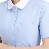護理機構專業工作裙,夏季淺藍色醫護職業裝,娃娃領撞色短袖護士服