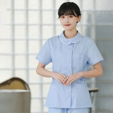 護理機構專業工作裙,夏季淺藍色醫護職業裝,娃娃領撞色短袖護士服
