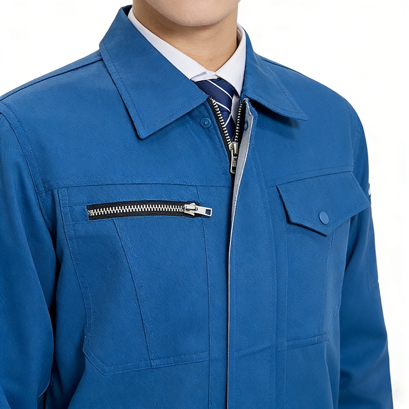 戶外翻領拉鍊紐扣工裝套裝 藍色厚實工裝夾克褲子