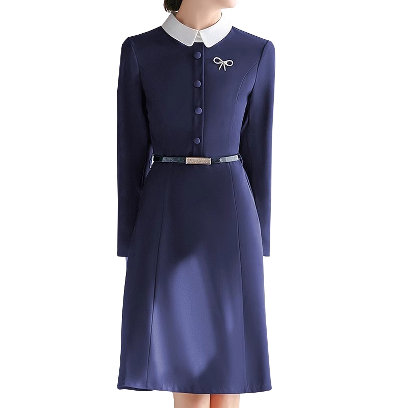 秋冬七分袖職業制服,霧霾藍娃娃領連衣裙