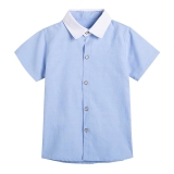 透氣棉質襯衫 淺藍色短袖款式 白色翻領設計 多場合適用