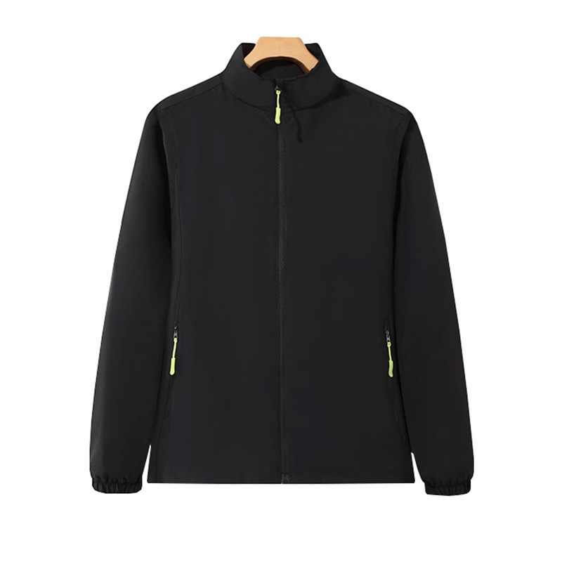 設計風格:採用經典黑色,簡約立領 + 全拉鍊設計,搭配螢光綠拉鍊頭作為視覺點綴,風格利落幹練,適配戶外通勤、團隊活動等場景。