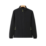黑色立領夾克 熒光綠拉鍊休閒衝鋒衣 戶外通勤