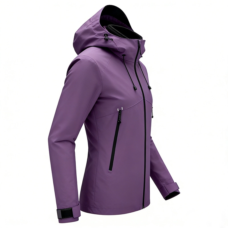 設計風格:採用柔和的香芋紫色,可拆卸連帽 + 雙拉鍊設計,風格清新又不失專業感,適配戶外通勤、輕戶外及日常休閒場景。
