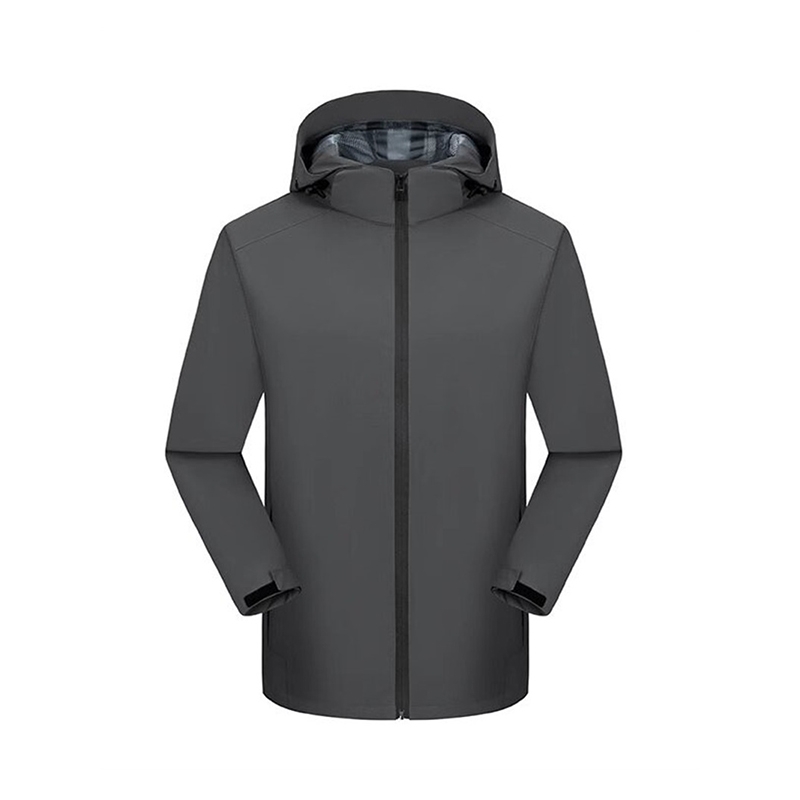 時尚深灰色戶外夾克,男女款連帽拉鍊防水面料外套,戶外運動日常穿搭理想之選