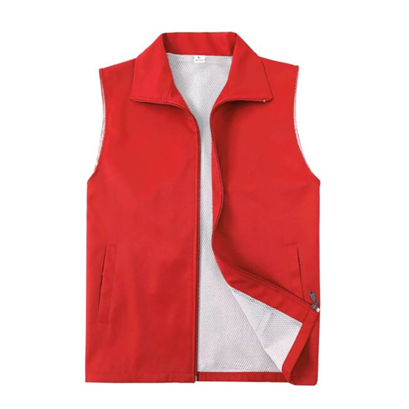 細節亮點:正紅色在人群中辨識度極高,傳遞溫暖與活力的視覺感受;翻領設計可搭配內搭襯衫,提升造型層次感;兩側隱藏式口袋兼具實用性與美觀性;網眼內襯設計解決了傳統馬甲夏季悶熱的痛點,適配全年多季節穿著。
