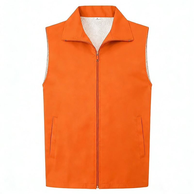 細節亮點:高飽和橙色在人群中辨識度極高,便於快速識別工作人員;翻領設計可搭配內搭襯衫,提升造型層次感;兩側隱藏式口袋兼具實用性與美觀性;網眼內襯設計解決了傳統馬甲夏季悶熱的痛點,適配全年多季節穿著。