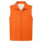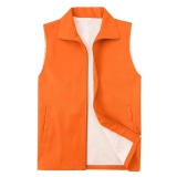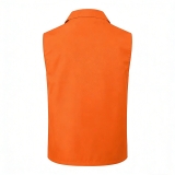 設計風格:採用高飽和度的橙色主體,翻領 + 拉鏈開合,無袖版型簡約利落,風格醒目且富有警示性,適配公益活動、戶外執勤、物流分揀等場景。