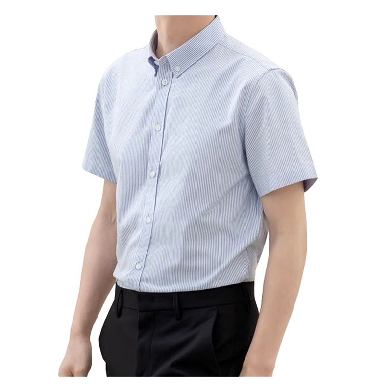 牛津紡豎條紋襯衫,寬鬆版型男士短袖襯衣