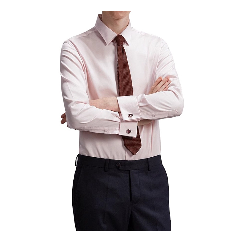 浪漫粉色紳士法式襯衫,長袖長絨棉商務修身婚禮慶典溫莎袖釦襯衣