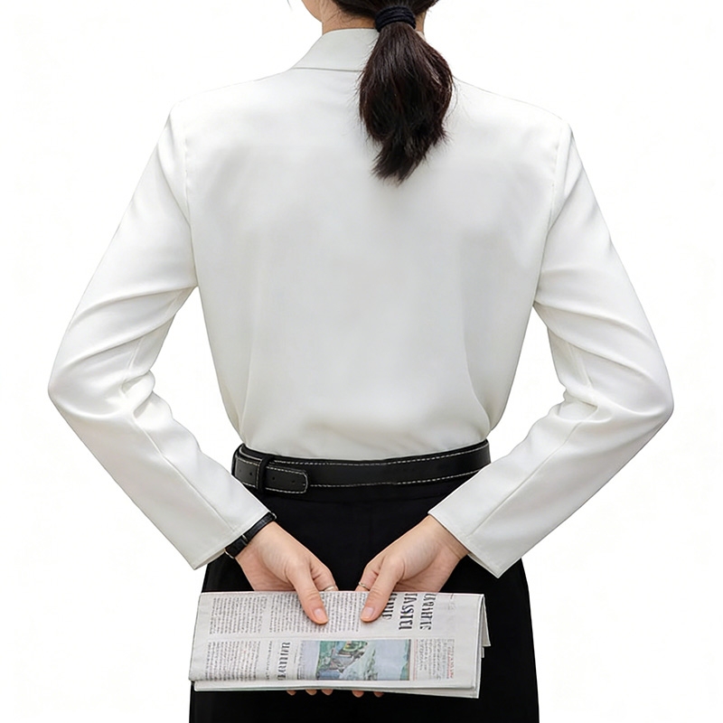團隊定制:可作為企業員工、商務接待崗位的統一工裝襯衫,純白色提升團隊專業度與凝聚力。