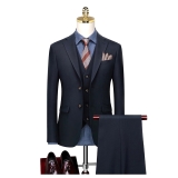 男士深藍色正裝西裝套裝 修身商務西服(含西褲) 辦公室、婚禮及正式場合適用