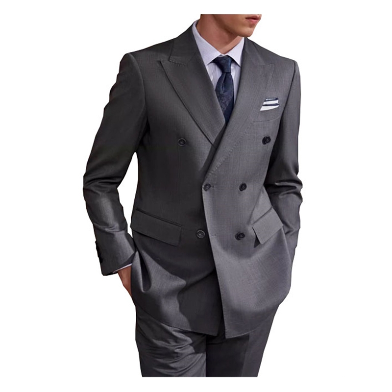 多用途正裝 / 半正裝西服套裝 辦公室、婚禮及特殊活動,灰色雙排扣西裝套裝