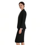 細節亮點:無領設計弱化硬朗感,增加柔和氣質;外套與半裙的簡約線條強化精緻感;純黑設計適配性極強,可與各類內搭、配飾組合,打造不同風格造型。