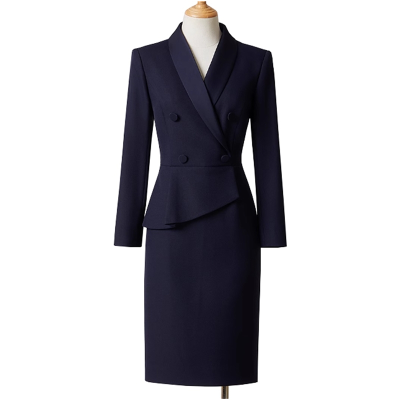 優雅知性深藍色職業套裝,彈性包臀裙制服