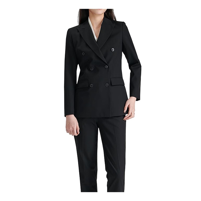 女士黑色雙排扣西裝套裝 春秋季職場通勤商務正裝