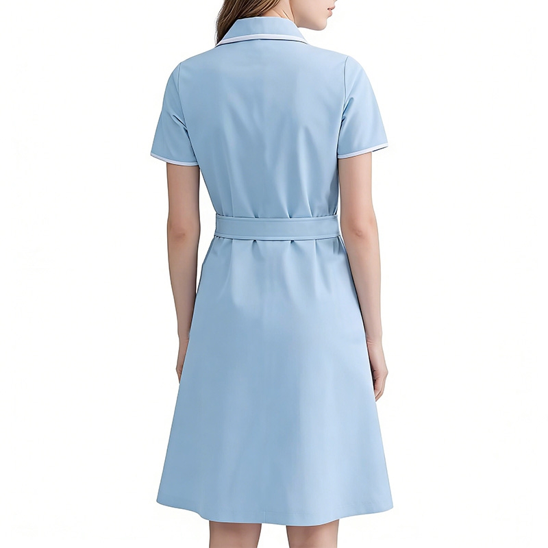 清新淺藍護士服,收腰繫彈力醫護連衣裙