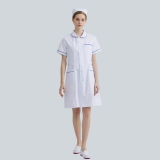 白色短袖帶黑邊醫療制服連衣裙,適用於醫院SPA美容院工裝