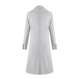 細節亮點:雙排釦設計增加服裝的復古感與正式感;西裝領設計可拉長頸部線條,搭配襯衫或高領毛衣時造型感更強;中長款版型可覆蓋臀部,提升保暖性與修飾身材效果;淺灰色比黑色更柔和,適配各類膚色與內搭組合,通用性強。