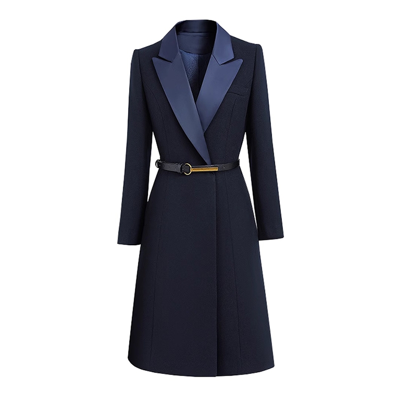 優雅知性深藍色職業套裝,彈性包臀裙制服